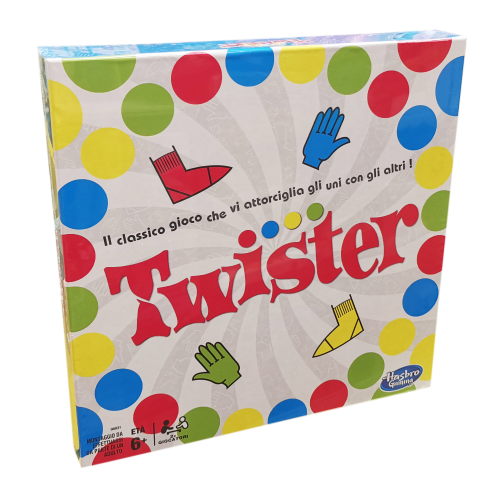 Il gioco Twister sfida i giocatori a mettere mani e piedi sul tappeto in diverse posizioni senza cadere Ricordi quando giocavi a twister da bambino? Proprio come nel Twister classico, in questo gioco per bambini da 6 anni in su l'ultimo giocatore che rimane in piedi vince. Attività da interno per bambini: Quando i bambini hanno bisogno di un'attività da interno per sfogarsi, questo Twister classico rappresenta un'ottima scelta. Gioca in squadra: Le istruzioni del gioco Twister includono le regole per Giocare a squadre e i consigli per svolgere un torneo di Twister. Divertentissimo gioco per feste: I giocatori da 6 anni in su si divertiranno tantissimo cercando di tenere mani e piedi sul tappeto. È un gioco divertente e attivo perfetto per feste e momenti in famiglia.