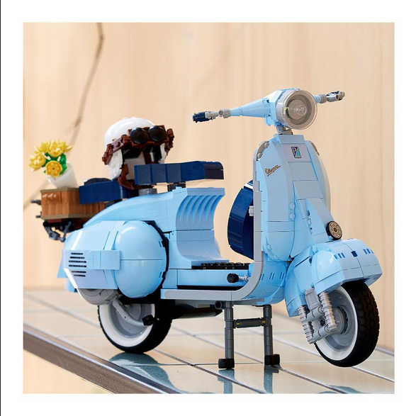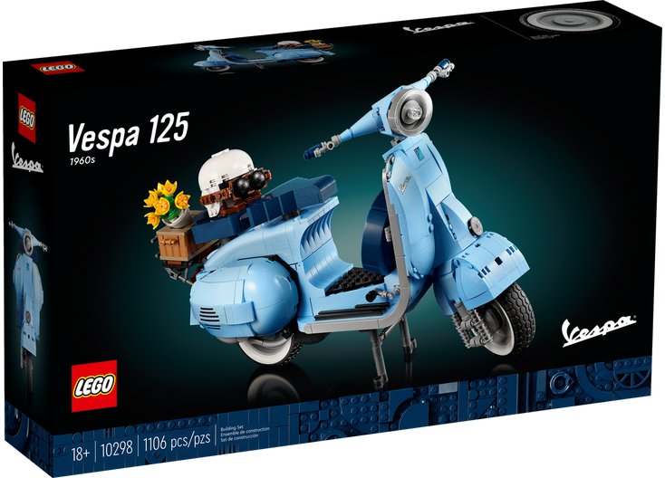 Immergiti un progetto di costruzione immersivo e di stile con questo kit per adulti del modello di Vespa 125 LEGO®. Ispirato alla classica Vespa Piaggio degli anni ‘60 azzurro pastello, questo modello presenta un colore LEGO molto raro che susciterà sicuramente l’interesse degli appassionati di costruzioni. Per celebrare il 75esimo anniversario della Vespa, i designer LEGO hanno collaborato a stretto contatto con il brand per ricreare questo straordinario modello di stile di vita rivolto ai costruttori adulti. Magnifici dettagli. Caratteristiche autentiche Come l'originale, questo modello di Vespa costruibile è caratterizzato da una ruota anteriore montata su un lato, 2 sedili, una copertura rimovibile che ricopre un motore in mattoncini, un cavalletto funzionante, così come lo sterzo. Il modello è rifinito con il logo Vespa, una classica targa italiana degli anni '60, una ruota di scorta, un casco, più un cesto di accessori sul retro che contiene un bouquet di fiori. Benvenuto nella tua zona Creatività e concentrazione per costruire la tua collezione di veicoli da sogno con modelli esclusivi, autentici, realizzati appositamente per gli adulti.