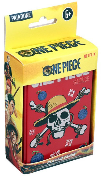 Set di carte a tema One Piece, fornito con una pratica scatolina in latta, utile per riporle o trasportarle comodamente.